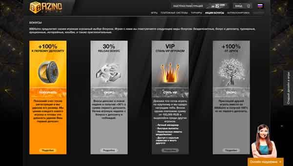 Казино Азино 888 дарит бонус до 6000 рублей за регистрацию, на депозит. Бонус доступен для СНГ, но кроме Украины. Бонус 100% на депозит.