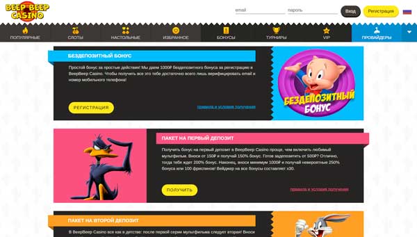 BeepBeep казино предлагает бездепозитный бонус 1000 рублей за регистрацию