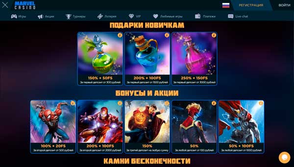 Marvel казино бездепозитный бонус