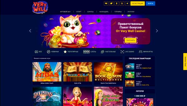 VeryWell casino без депозита с выводом дает 50 фриспинов за регистрацию в казино. Досутпня игра Dolphins Pearl. Необходимо заполнить профиль.