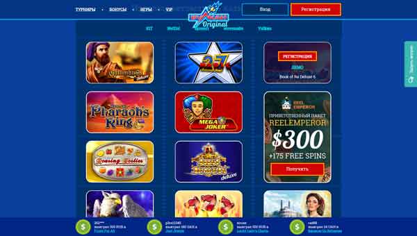 Онлайн казино Вулкан Оригинал дает бонус за регистрацию без депозита в размере 777 рублей. С выводом. Доступны все игры, все страны. Без ограничений максимальной суммы по выводу.